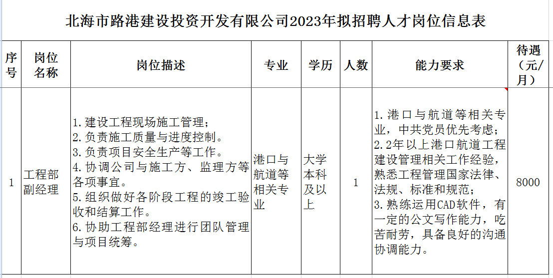 北海市路港建設(shè)投資開發(fā)有限公司招聘簡(jiǎn)章